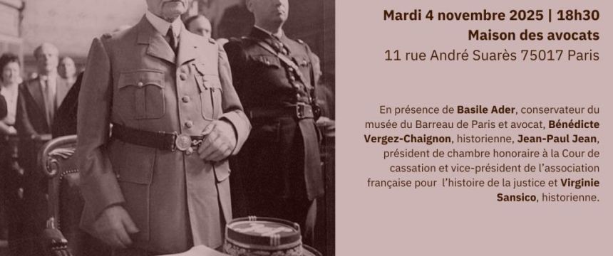 En partenariat avec l'ONaCVG, le Musée du barreau vous invite à la conférence "Juger l'ennemi, l'Occupation et après" le mardi 4 novembre 2025 de 18h30-21h30.